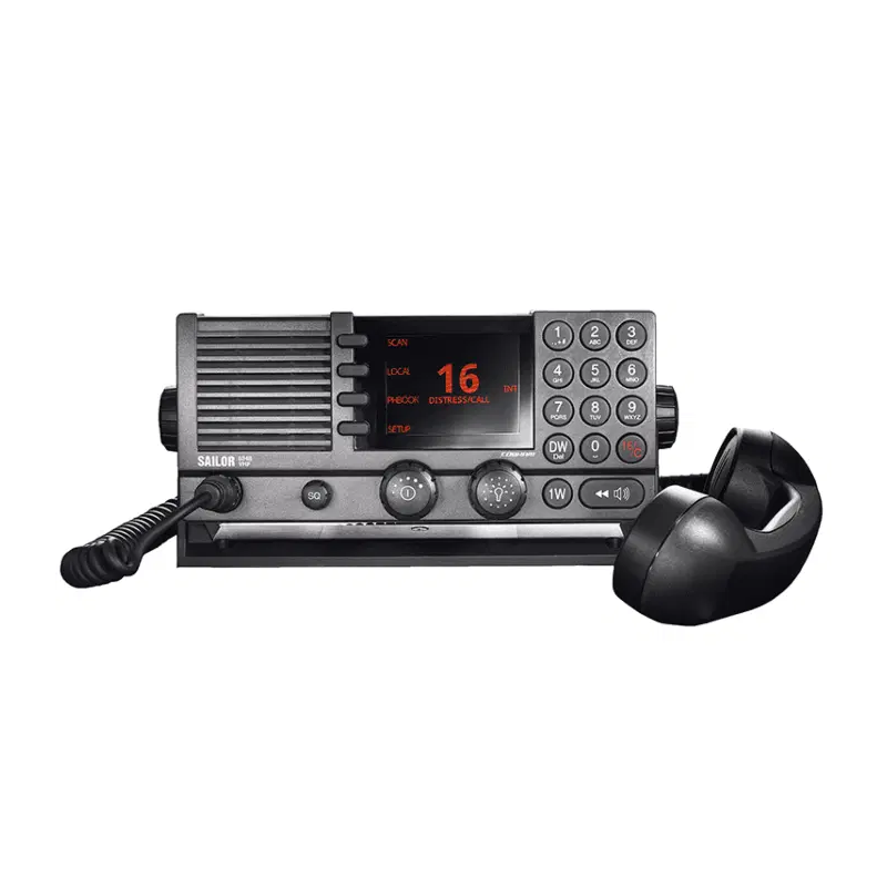 Emisora VHF SAILOR 6248 SIN DSC – Radioteléfono VHF marino fijo profesional 12 V sin GMDSS – Homologación R&TTE (CE) – Comunicaciones de voz fiables para embarcaciones de trabajo y recreo – Replay Rx – Scanning, Dual Watch y Tri-Watch – Audio potente con altavoz interno de alta calidad – Diseño marino robusto y estanco IPx8 / IPx6 – Compatible con canales marítimos internacionales y canales privados - Incluye micrófono de mano SAILOR, soportes de montaje, cableado y manual de usuario
